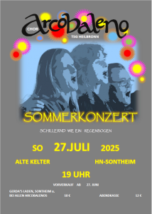 Der Chor ist mit neuen Frauenstimmen beglückt worden. Trotz Corona oder gerade deswegen. Sie sagten: „Endlich können wir wieder am Leben teilnehmen, uns was Neues suchen, was Körper und Geist gut tut“. Gute Entscheidung. Herzlich willkommen im Arcobaleno! Wie schön, das ihr da seid. Nicht allen ist das gelungen. So möchte der Chor euch sagen, wir vermissen euch sehr und sind traurig euch nicht in unserer Mitte zu haben. Wir respektieren aber eure Entscheidung und hoffen auf ein Wiedersehn. Bleibt gesund oder werdet bald wieder ganz gesund.